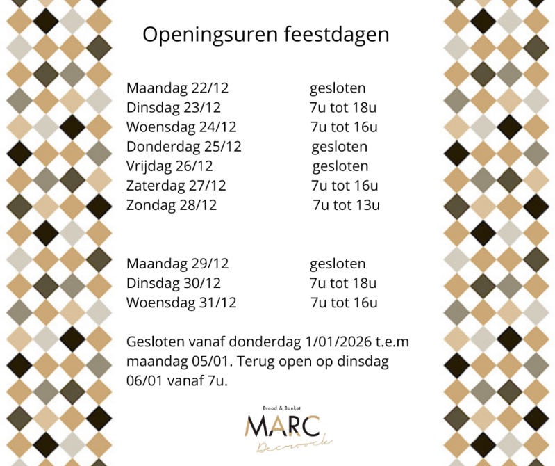 Bakkerij Marc is een familiebedrijf dat al meer dan 40 jaar ambachtelijk echt brood en gebak produceert. Onze passie voor kwaliteit en smaak zorgt ervoor dat we elke dag met liefde en vakmanschap bakken. We gebruiken alleen de beste ingrediënten en volgen authentieke recepten. Kom bij ons langs en geniet van heerlijk vers gebakken echt brood en kraakverse pistolets en gebak!